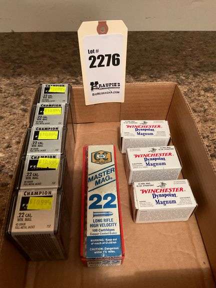 22 Mag. Ammo, 250 Rounds .22 Winchester Mag 40 grain Full Metal Jacket, 150 rounds .22 Winchester Mag. 45 grain Dynapoint, 42 rounds .22 LR High-Velocity Copper Coated