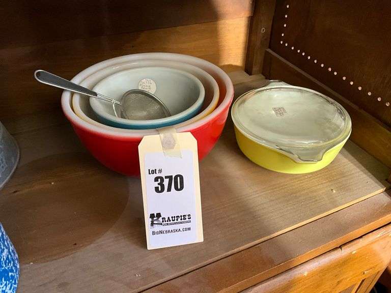 Red & Yellow - Fire King Brand, Casserole & Blue - Pyrex Brand