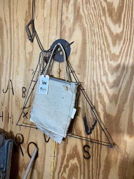LOT 134 - 2 Canvas Water Bags, Stove Damper, Old Barbed Wire