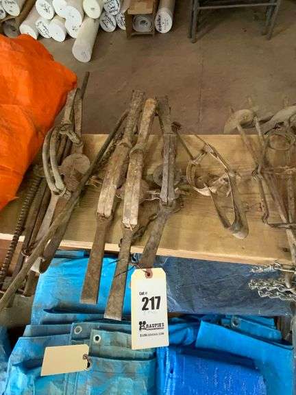 LOT 217 - 2 Double Spring Traps, 1 Small, Conibear & Tiedown Stakes
