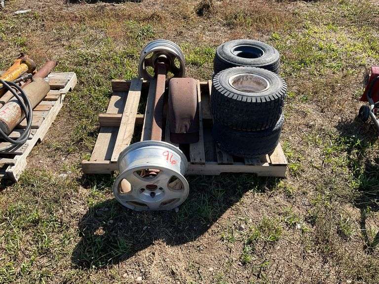 LOT 96 - Small Axle, 4 misc. Golf Cart size tires