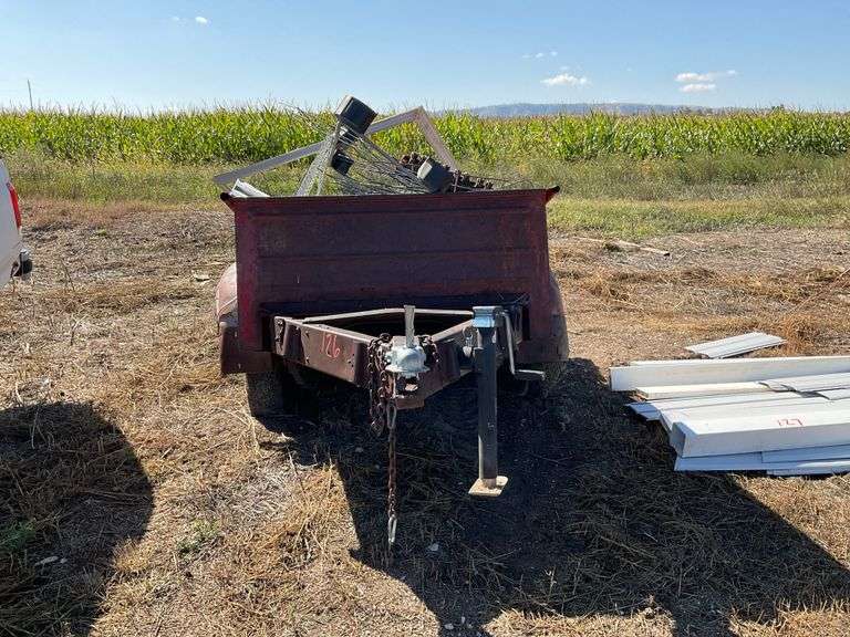 LOT 126 - Old International Pickup Box Trailer w/ Motor Parts
