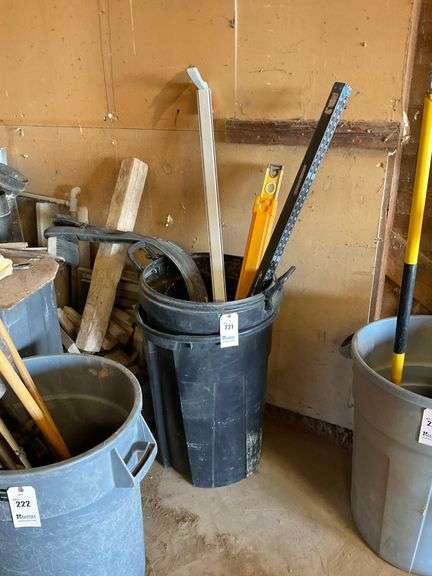 LOT 221 - Trash Can w/ Nice Levels and Measuring Sticks