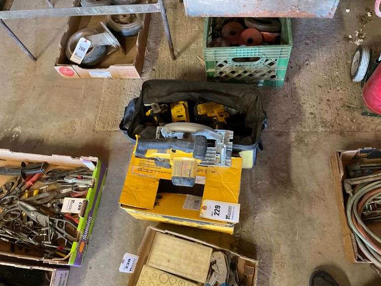 LOT 229 - Dewalt Cordless Tools, 3/8” Impact, 1/2” Impact, Saw, Batteries, Charger