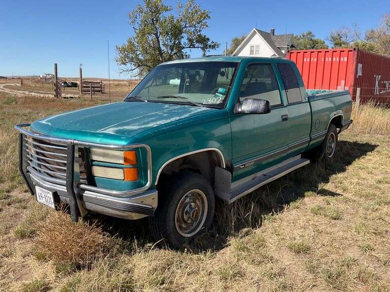 4x4, auto trans., 6.5’ Box, bed liner, good 16” rubber, cloth interior, 5.0 liter gas engine. Pickup will run, but the transmission is slipping. VIN 2GTEK19H2S1508332