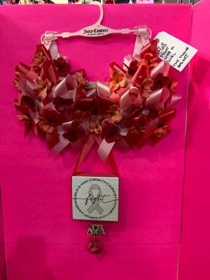 Breast cancer awareness ribbons, flowers & fight like a girl plaque