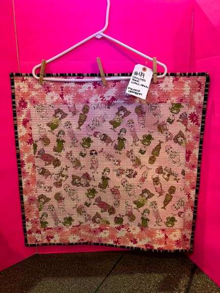 Small quilted wall hang w/ ladies on one side & bra on the other
