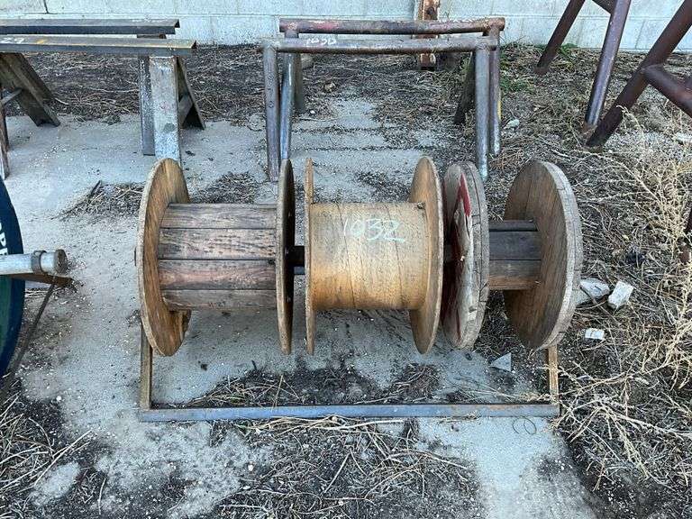 LOT 1032 - 3 Wood Spools on Unrolling Rack