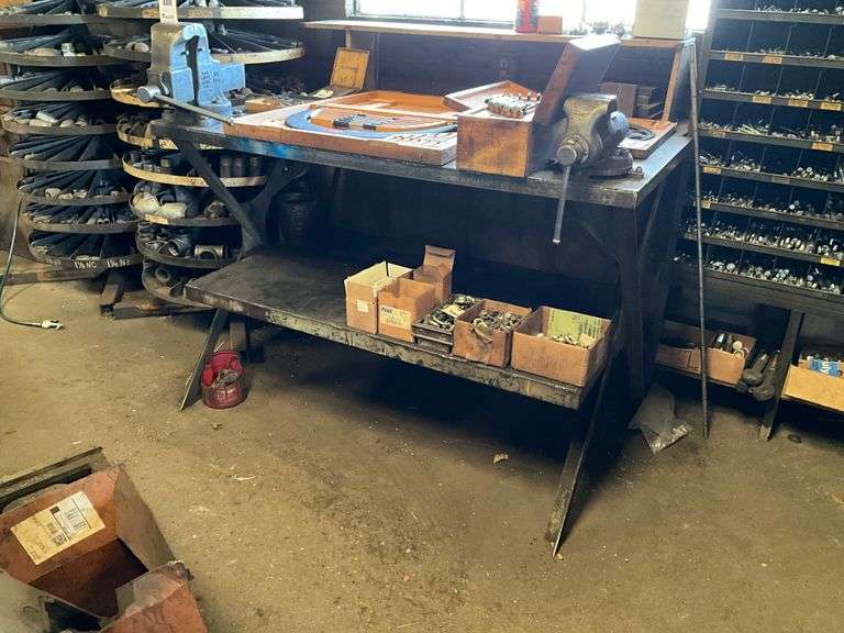 55" x 44" x 40" Tall. Ridge 4.5" Vise, Wilton 4" Vise, 3/8" Top