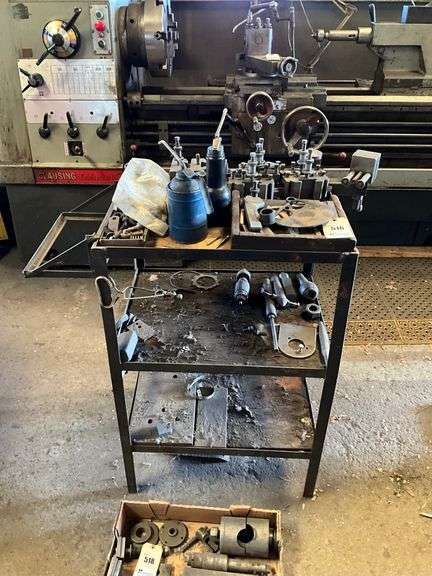 LOT 516 - Steel Table with Lathe Parts