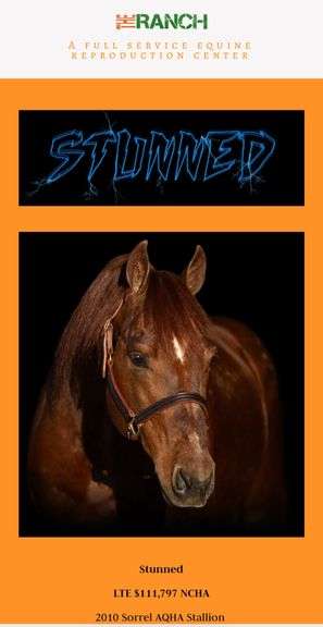 1 breeding the AQHA Stallion Stunned, chilled, semen. Standing at The Ranch Equine in Texas, chute fee included